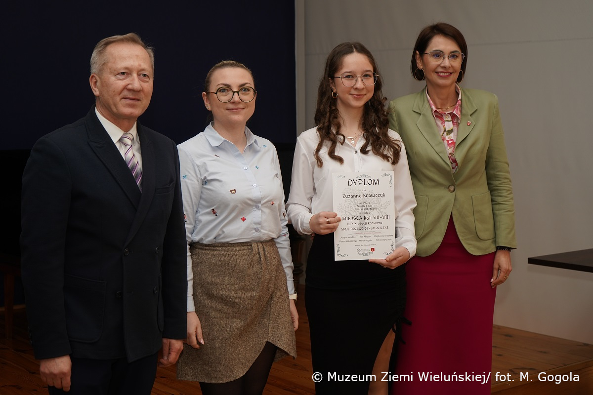Dziś w Muzeum Ziemi Wieluńskiej miało miejsce rozstrzygnięcie konkursu i otwarcie wystawy “Moje drzewo genealogiczne”. Na konkurs napłynęło 29 prac, najlepsze z nich zostały nagrodzone i wyróżnione. Dyplomy i nagrody wręczali: dyrektor MZW Jan Książek, Zastępca Burmistrza Wielunia Joanna Skotnicka-Fiuk oraz Przewodnicząca Rady Miejskiej Justyna Godszling-Graczyk.