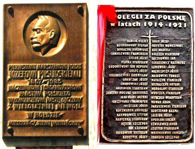 Na budynku banku, naprzeciwko Ratusza, znajdują się dwie tablice pamiątkowe. Pierwszą z nich, upamiętniającą postać Marszałka Józefa Piłsudskiego, odsłonięto w 1992 r. Umieszczony na niej napis głosi: PIERWSZEMU MARSZAŁKOWI POLSKI, JÓZEFOWI PIŁSUDSKIEMU 1867-1935 NACZELNIKOWI I ORGANIZATOROWI PAŃSTWA POLSKIEGO, WYZWOLICIELOWI NASZEJ OJCZYZNY Z WIELOLETNIEJ NIEWOLI W HOŁDZIE MIESZKAŃCY ZIEMI WIELUŃSKIEJ. Jest ona repliką brązowej tablicy zniszczonej przez Niemców w 1939 r.Drugą z pamiątkowych tablic na tym budynku odsłonięto z inicjatywy Muzeum w 2010 r. – w 90. rocznicę Bitwy Warszawskiej. Tablica zawiera wykaz 46 nazwisk żołnierzy pochodzących z Wielunia, którzy w latach 1914 – 1921 oddali życie za Ojczyznę.