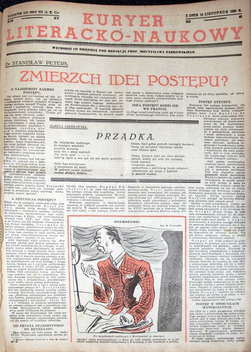 Z „KURYERA LITERACKO-NAUKOWEGO” Z 14 LISTOPADA 1938 R.