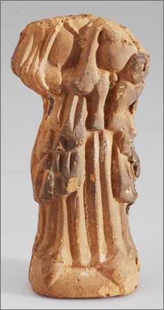 Przykład późnośredniowiecznej sztuki o charakterze dewocyjnym. Znaleziona podczas wykopalisk przy ulicy Królewskiej w Wieluniu uszkodzona figurka ceramiczna. Niewielka (zachowana wysokość 7,7 cm) rzeźba przedstawia Matkę Boską z Dzieciątkiem. Wykonana z tłustej glinki, przez odciśnięcie w dwuczęściowej formie. Na terenie Polski odkryto dotąd około 300 podobnych figurek, wytwarzanych w warsztatach we Wrocławiu i Dzierżoniowie w pierwszej połowie XV wieku. Zabytek o numerze MZW-A-9398 świadczy o ożywionych kontaktach Wielunia z miastami Dolnego Śląska. |